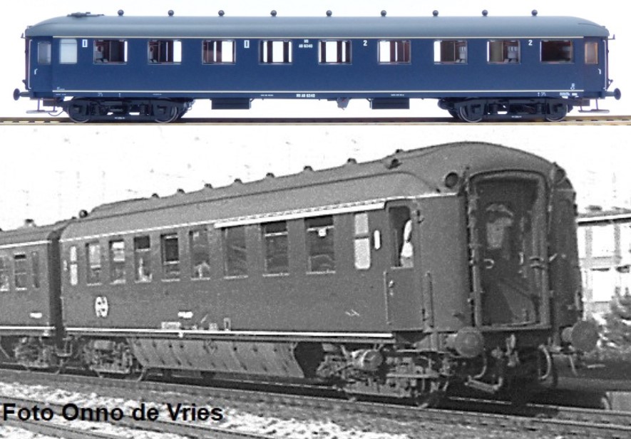 2-teiliges Reisezugwagen-Set der NS AB7374 Plan K und AB 6240 berlinerblau (Set), für die Epoche 3a