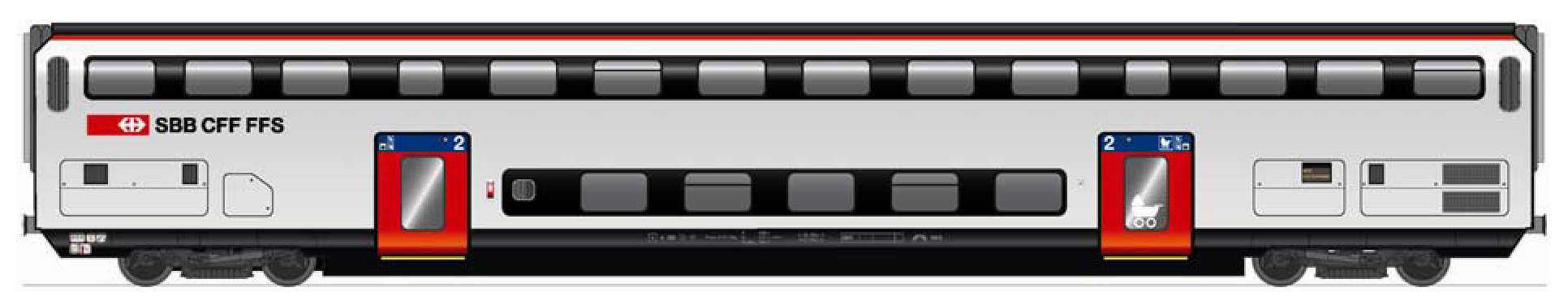 AC-Ausführung. IC2000 Doppelstockwagen, 2.Klasse der SBB im neuen Design für die Epoche 6.