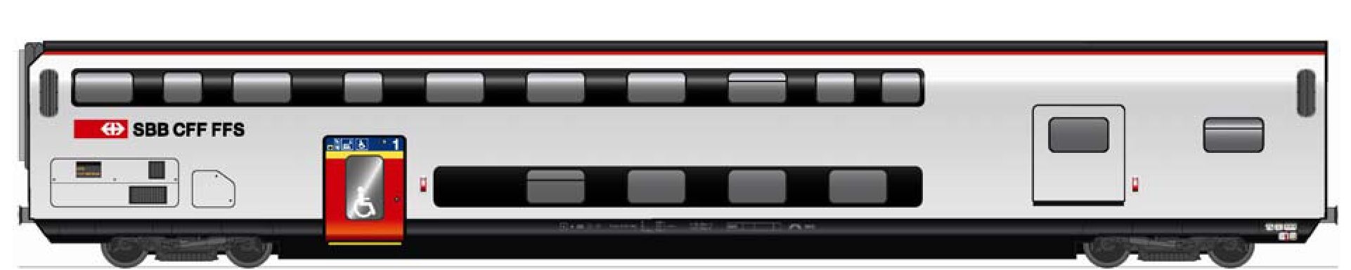 IC2000 Doppelstockwagen, 1.Klasse mit Gepäckabteil der SBB im neuen Design für die Epoche 6.