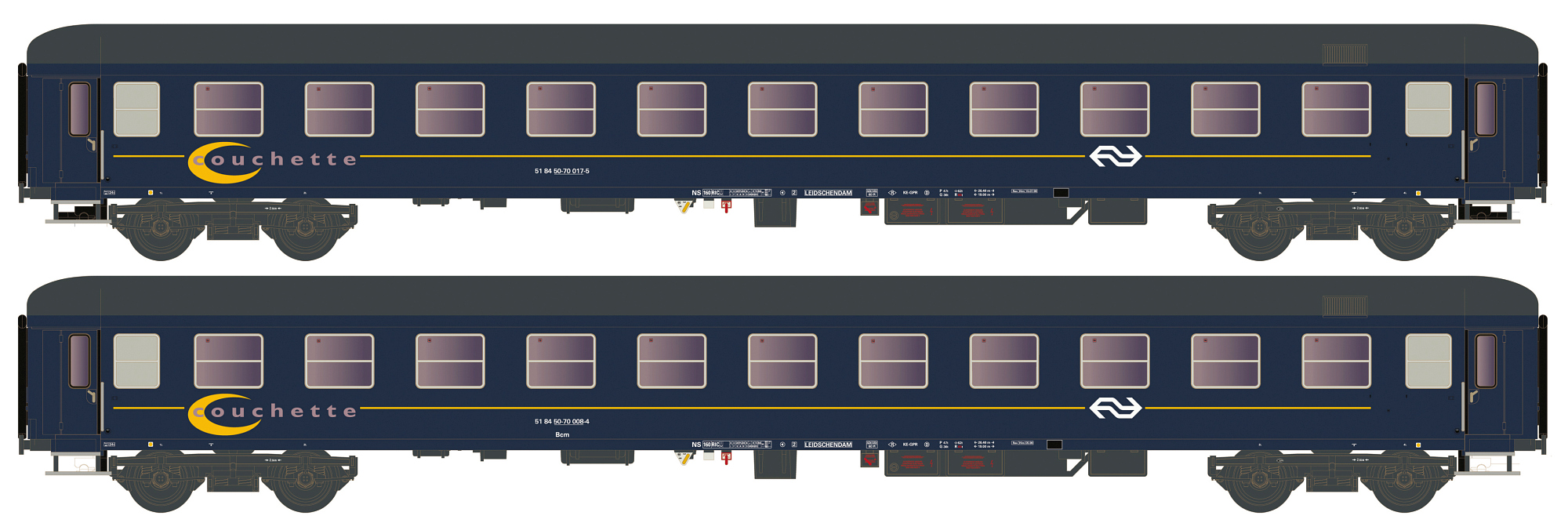Anfang der 1990er Jahre beschaffte sich die niederländische Bahn eigene Liegewagen aus dem Bestand der Deutschen Bahn AG. Gekauft wurden zwanzig exTouristikwagen der Bauart Bcm246. Anfangs waren die Wagen noch in blau/beige unterwegs, später dann in einheitlicher dunkelblauer Farbgebung. Modelleigenschaften:- Detaillierte mehrfarbige Inneneinrichtung- Ideale Ergänzung zu den niederländischen Wagen von L.S. Models