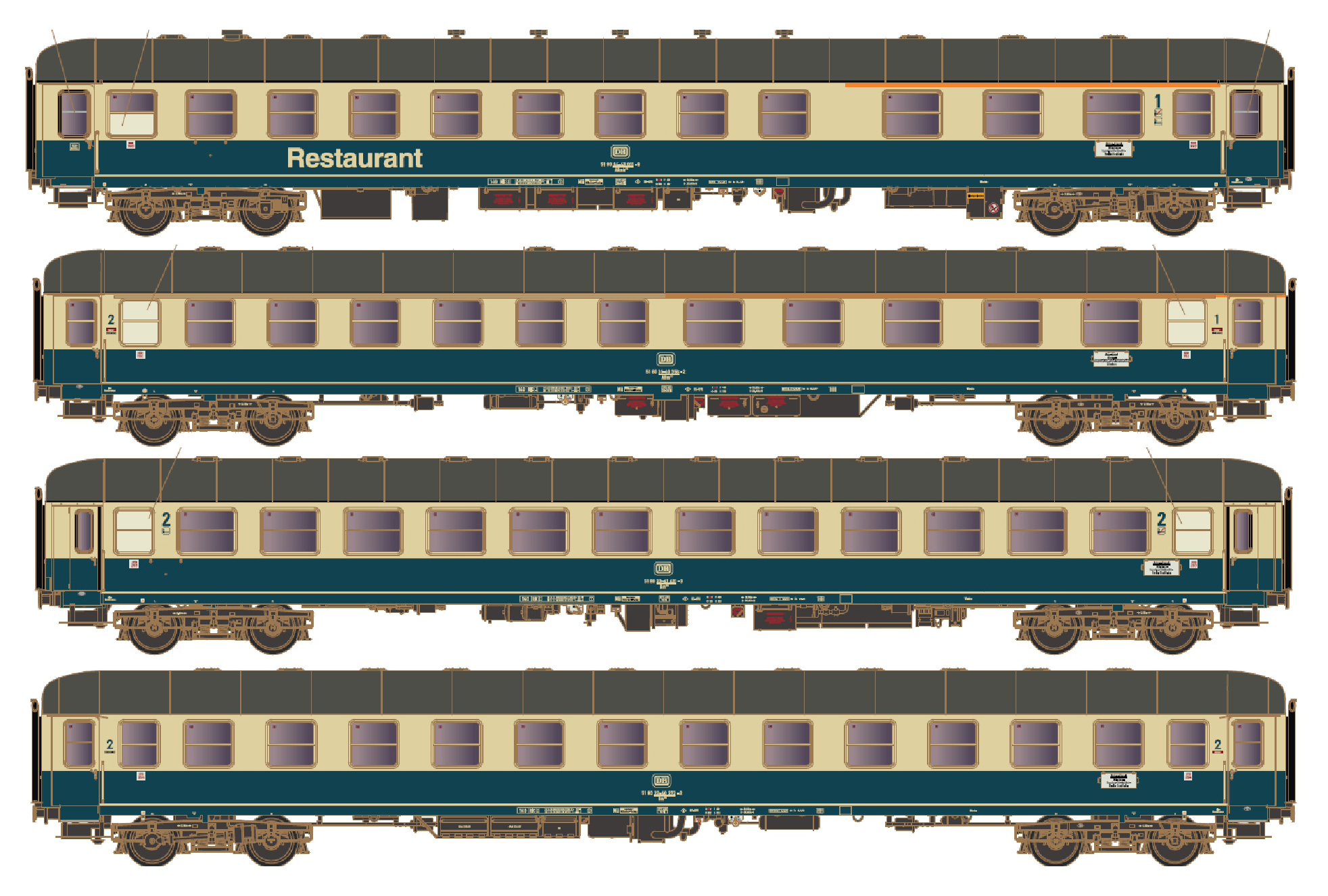 Die Abbildungen zeigen noch nicht die exakte Ausstattung, Farbgebung und Beschriftung der Wagen. Diese werden, wie bei LS/Hobbytrain üblich, den Vorbildern detailgenau