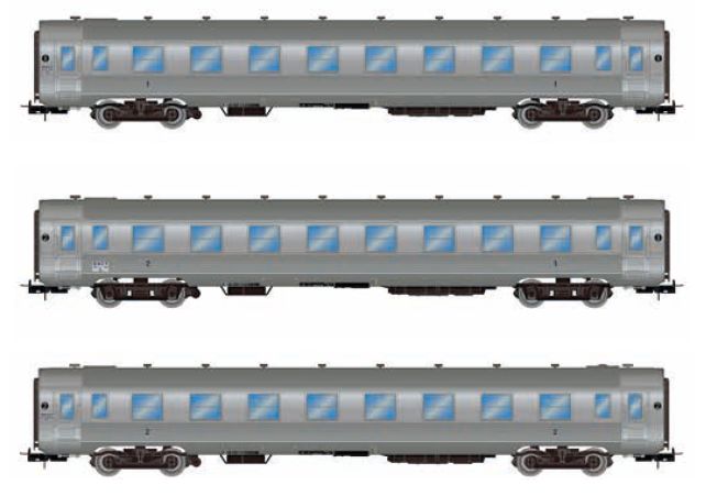 SNCF, set di 3 carrozze DEV Inox corte, composto da 1 carrozza A8, 1 carrozza A3B5 e 1 carrozza A5s, ep. III