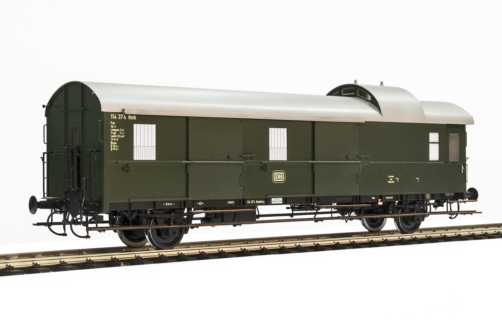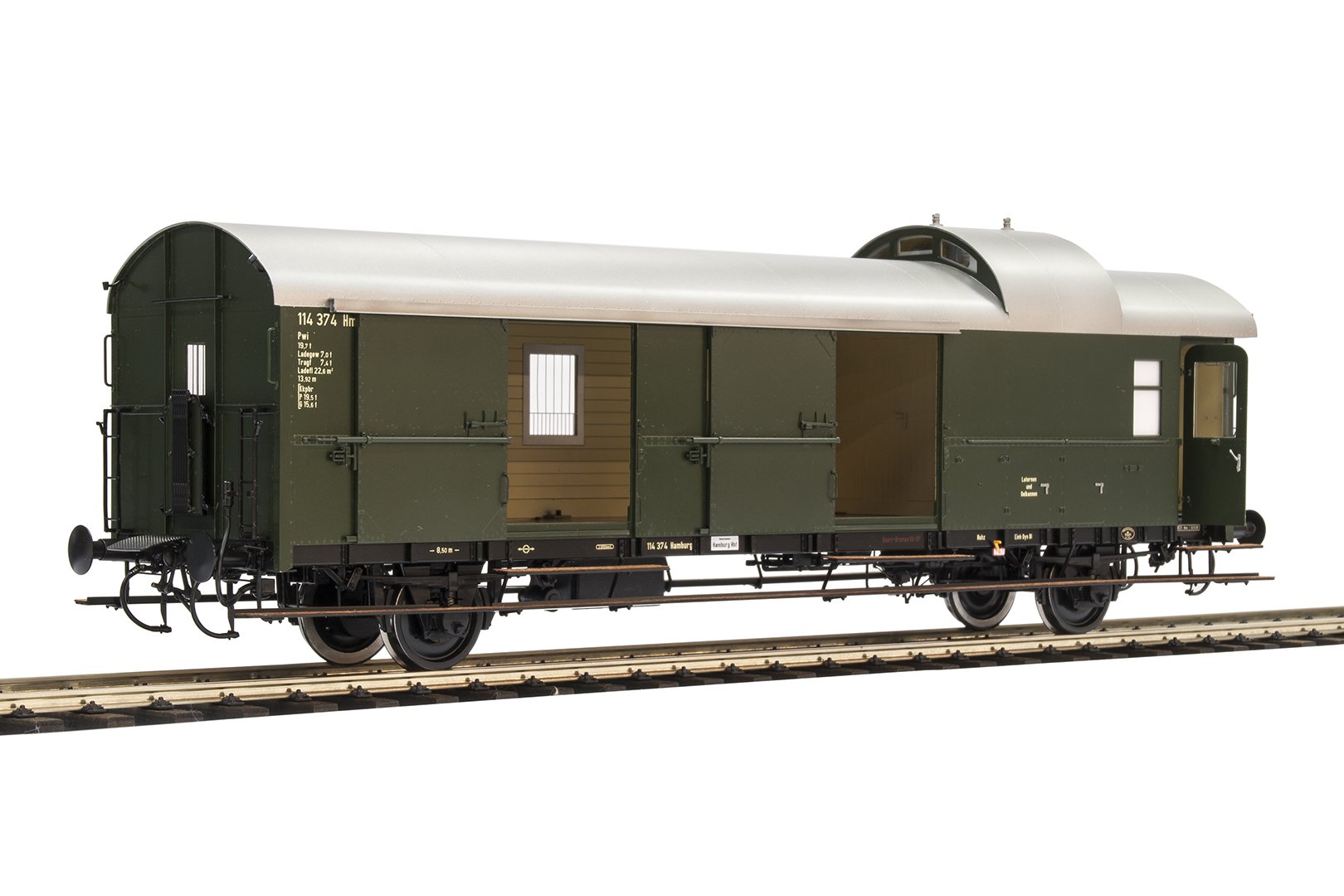 Wagenkasten RAL 6007 Es werden 2 verschiedene Wagennummern aufgelegt. A,B hinter der Artikelnummer Handgefertigtes Präzisionsmodell aus Messing mit original Schraubkupplungen, austauschbar gegen Funktionskupplungen, Federpuffer, kinematische Kurzkupplung mit Kulissenführung für vorbildgerecht enggekuppelten Betrieb, kugelgelagerte und gefederte Achsen, detaillierte Inneneinrichtung, komplette Detaillierung des Wagenunterbodens und der Bremsanlage, schaltbare Innenbeleuchtung inklusive Funktionsdecoder mit Strompuffer für flackerfreien Betrieb, Schiebetüren zum Öffnen, vorbildgerecht beidseitig profilierte Räder. LüP ca. 30,9 cm, Gewicht ca. 1 kg, Mindestradius 910 mm. Die Fotos zeigen Epoche 3 Modell in Spur 1. Technische, optische und Detailänderungen vorbehalten Empfohlen für Modellbauer und Sammler ab 14 Jahren. Aufgrund maßstabs- und vorbildgerechter bzw. funktionsbedingter Gestaltung sind Spitzen, Kanten und Kleinteile vorhanden. Verschluckungsgefahr. Deshalb nicht in die Hände von Kindern unter 10 Jahren!