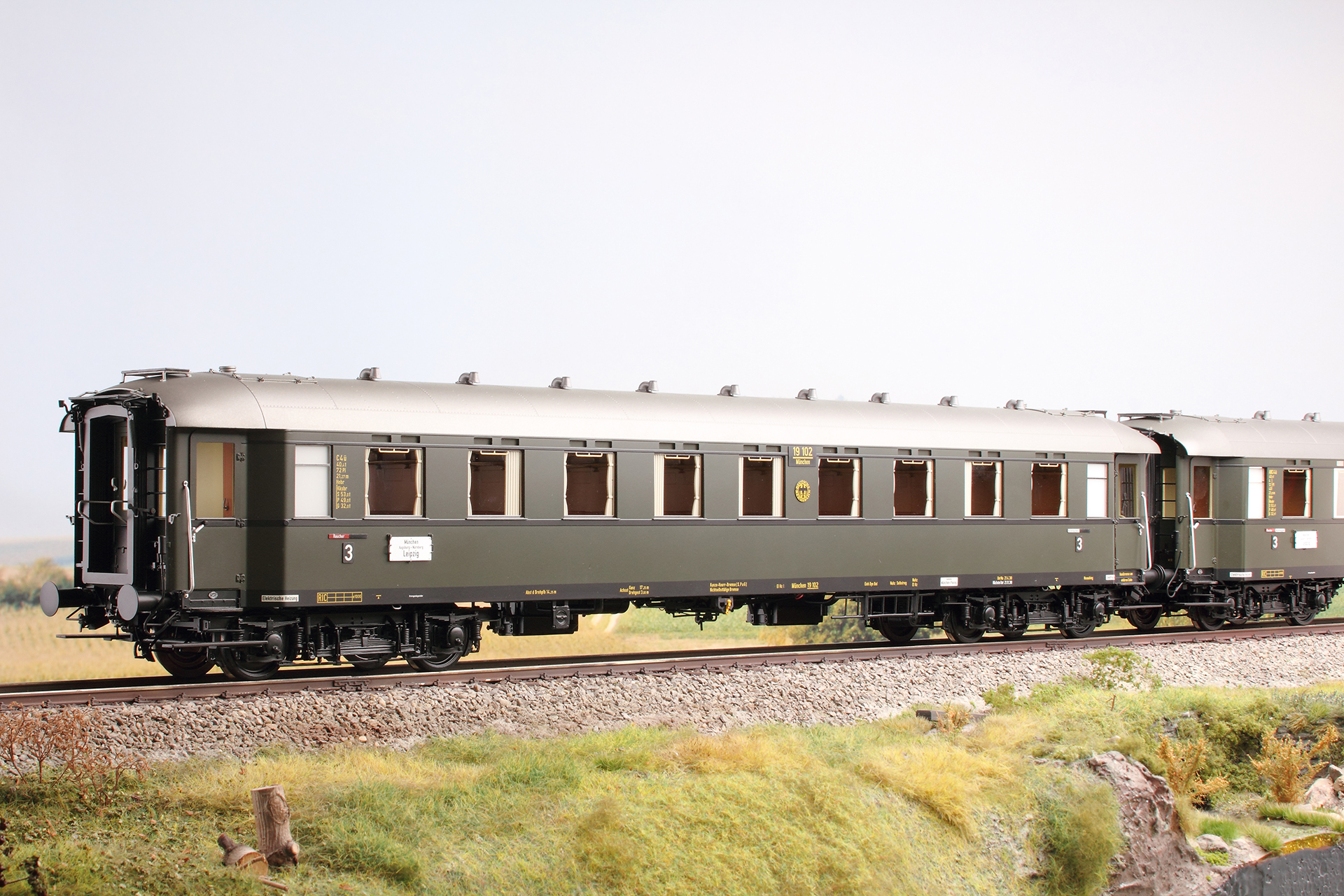 Ab 1935 wurden die vierachsigen Schnellzugwagen D 35 / D 36 für den komfortablen Reiseverkehr gebaut. Als erste geschweißte Bauart der DRG, waren sie für 140 km/h zugelassen und hatten Wagenübergänge mit Faltbälgen. Mit gesamt 986 gebauten Exemplaren war dies der meistgebaute Schnellzugwagen der DRG! Durch die Beheimatung in 17 verschiedenen Direktionen, war dieser Waggon in ganz Deutschland verbreitet und somit auch in der Schweiz, Österreich, Frankreich und Italien unterwegs. Sein Einsatzzeitraum von 1935 bis 1982 macht deutlich, wie gelungen diese Konstruktion war. Einzelne Waggons sind auch heute noch als Museumswagen erhalten. Durch seine LüP im Original von 21,2 m, ist er auch im Modell ohne Probleme auf 910 mm Radien einsetzbar.