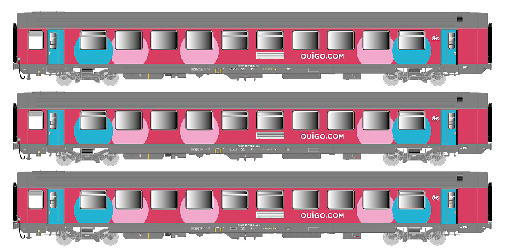 Reisezugwagen-Set Vtu 3-teilig der SNCF OUIGO, für die Epoche 6.