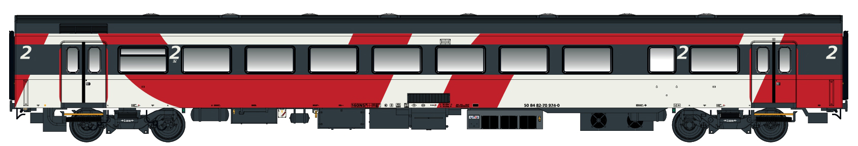 Reisezugwagen ICRm BD 2. Klasse mit Klimaanlage, der NS Fyra, Wagen 24, Farbgebung rot/weiß, für die Epoche 6.