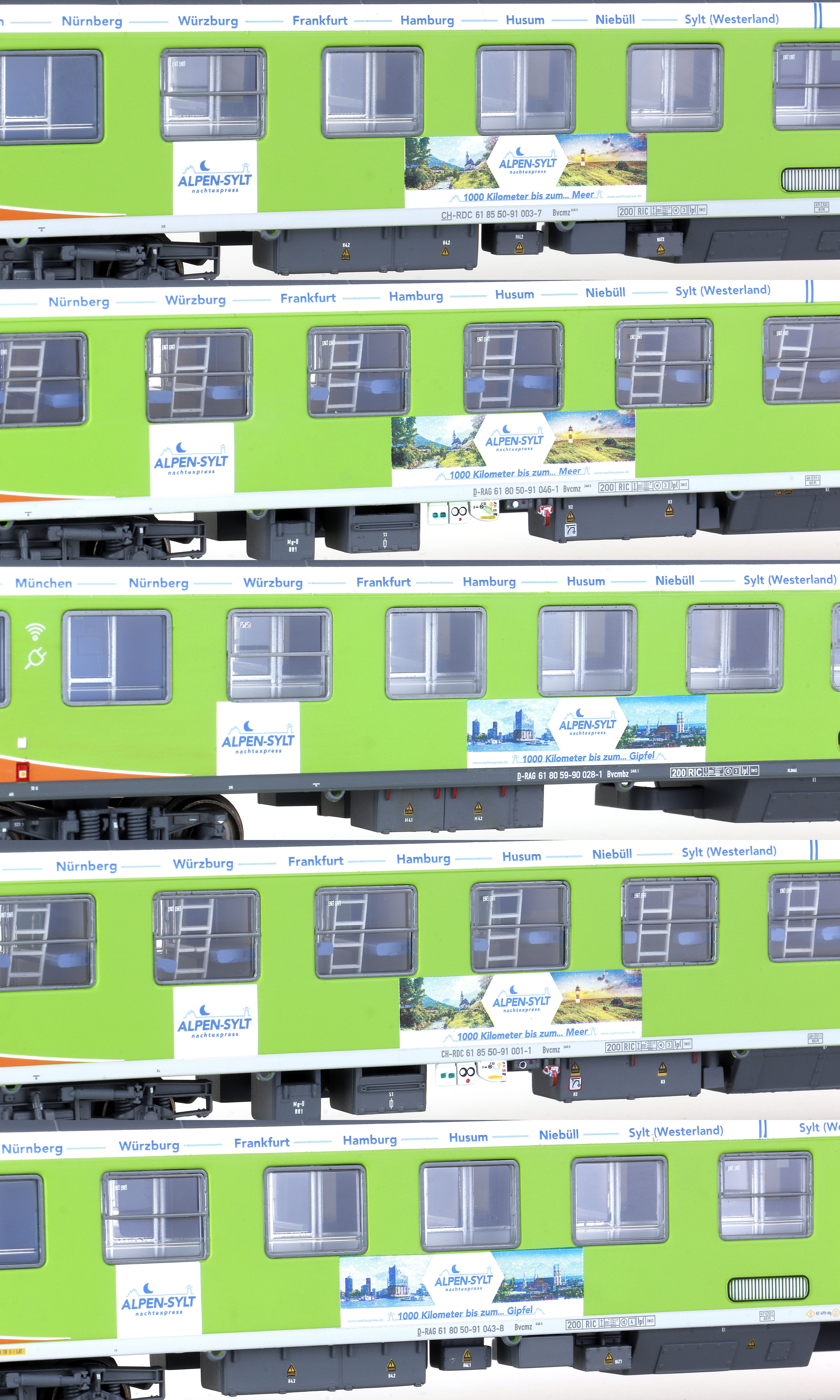 AC-Wechselstrom. 5er Set Liegewagen (Bvcmt 248.5 + Bvcmbz 249.1) - Alpen-Sylt Express, Ep. VI