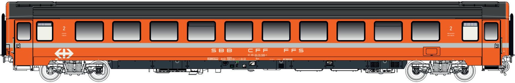 Reisezugwagen 2.Klasse UIC Bpm Z1, der SBB, C1 Lackierung, schwarze Fensterrahmen, für die Epoche 5.