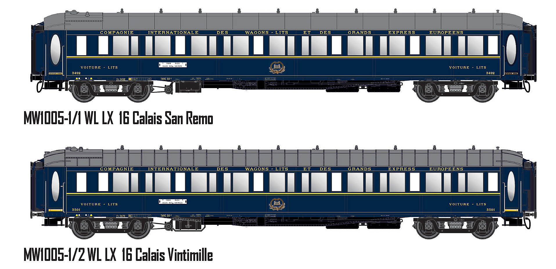 Reisezugwagen-Ergänzungsset 2-teilig der CIWL "Train Bleu", für die Epoche 2 (1957).