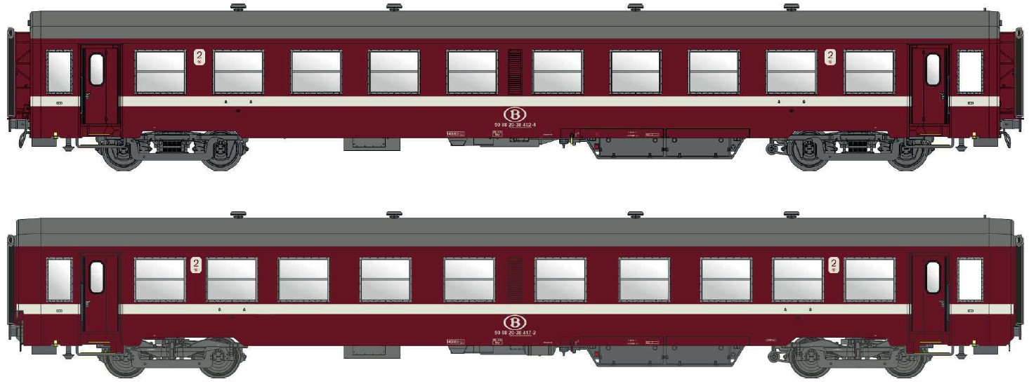 2er Set Personenwagen K4 B, 2.Kl. SNCB, Ep.V