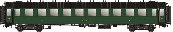 3-teiliges Personenwagen-Set der Bauart C10yfi der SNCF für die Epoche 2b.