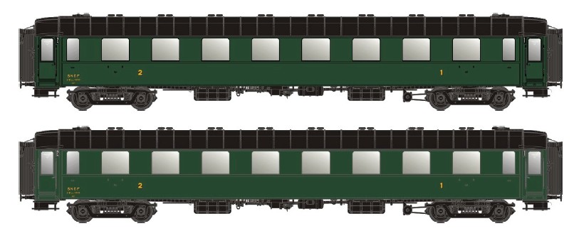 2-teiliges Personenwagen-Set der Bauart A3B5myfi der SNCF für die Epoche 3b.
