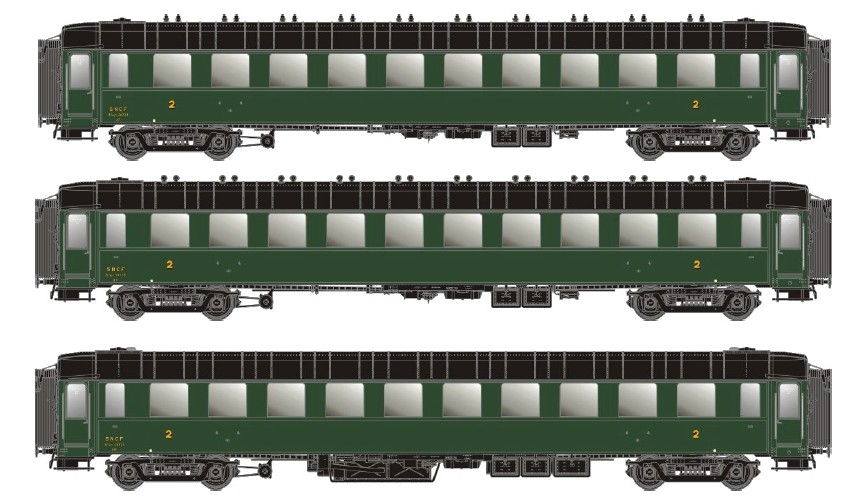 3-teiliges Personenwagen-Set der Bauart B10myfi der SNCF für die Epoche 3c/d.