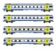 1x Bt Steuerwagen, 1x A 1. Klassewagen, 1x B 2 .Klassewagen, 1x AD 1. Klasse/Gepäckwagen, für die Epoche 6.