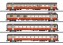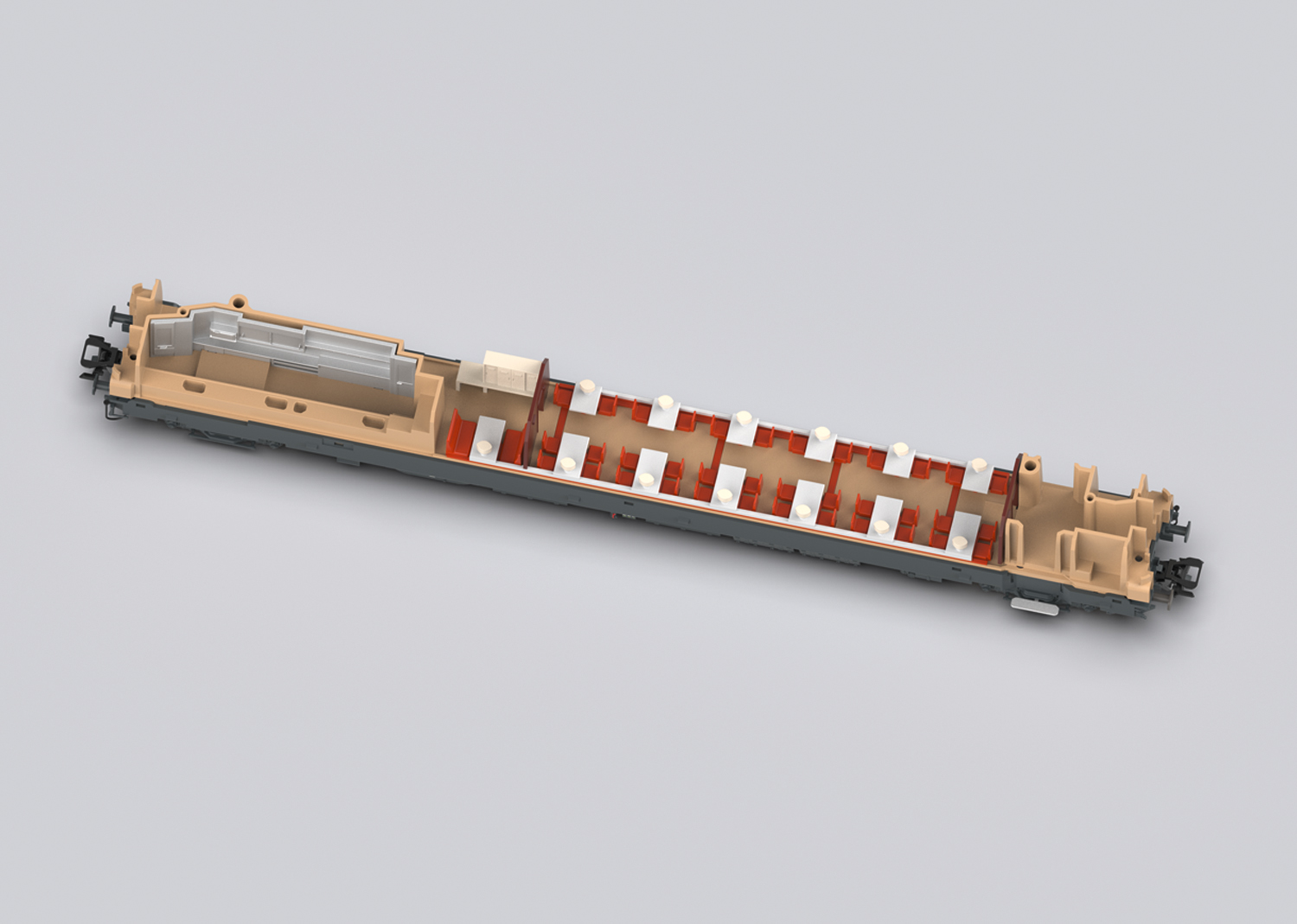 Personenwagen-Set Swiss Express - Vorbild: Vier Einheits-Personenwagen Typ EWIII der Schweizerischen Bundesbahnen (SBB/CFF/FFS). Ein Halbgepäckwagen Bauart AD, 1. Klasse, ein Speisewagen Bauart WR und zwei Großraumwagen Bauart B, 2. Klasse. Kieselgrau/Blutorange Grundfarbgebung des Swiss Express. Zuglauf: Genève–Lausanne–Bern–Zürich HB. Wagen-Ordnungsnummern 1, 13 und 14. Speisewagen ohne Ordnungsnummer. Betriebszustand ab 1975.Modell: Komplette Neukonstruktion der EWIII-Wagenfamilie. Mehrfarbige Inneneinrichtungen. Alle Wagen mit serienmäßig eingebauter LED-Innenbeleuchtung. In jedem Wagen ist ein Pufferkondensator zur Überbrückung von kurzfristigen stromlosen Stellen eingebaut. Speisewagen mit beleuchteten Tischlampen. Ein Großraumwagen verfügt über eine serienmäßig eingebaute Zugschlussbeleuchtung. Ausgestattet mit trennbaren, stromführenden Kurzkupplungen. Die Innenbeleuchtung funktioniert im Verbund mit dem Schlusslichtwagen, die vorgegebene Fahrzeugreihenfolge ist dafür einzuhalten. Typspezifisch gestaltete Drehgestelle, Dachformen, Seitenwände und Unterböden mit vielen angesetzten Details. Pufferhöhe nach NEM. Separat angesetzte Lüfter, Griffstangen, Steuerleitungen und Trittstufen an den Drehgestellen. Aufgedruckte Wagenlaufschilder und Ordnungsnummern. Jedem Wagen liegen zwei ansteckbare Überführungs-Stirntüren bei, die beim Vorbild für Überführungen angebracht wurden. Dem Schlusslichtwagen liegt zudem eine Imitation einer automatischen Kupplung bei. Alle Wagen einzeln verpackt in zusätzlicher Umverpackung. Befahrbarer Mindestradius 360 mm. Länge über Puffer ca. 113,2 cm.Ein ergänzendes Wagen-Set finden Sie im Märklin H0-Sortiment unter der Artikelnummer 42191. Eine passende Elektrolokomotive finden Sie im Märklin H0-Sortiment unter der Artikelnummer 38420. Die passenden Rangier-Kuppelwagen Sputnik finden Sie ebenfalls als Neukonstruktion unter der Artikelnummer 46850.Dieses Modell finden Sie in Gleichstromausführung im Trix H0-Sortiment unter der Artikelnummer 23690.