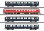 Modell: Detaillierte Ausführung. Alle Wagen mit serienmäßig eingebauter LED-Innenbeleuchtungen. In jedem Wagen ist ein Pufferkondensator zur Überbrückung von kurzfristigen stromlosen Stellen eingebaut. Ein Schürzenwagen 1. Klasse zusätzlich serienmäßig mit Schleifer und Zugschlussbeleuchtung ausgestattet. Über die serienmäßig eingebauten stromführenden Kurzkupplungsköpfe kann der ganze Wagenverband mit Strom versorgt werden. Dazu ist eine fest definierte Fahrzeugreihenfolge vorgegeben. An den beiden Enden des Schnellzugwagen-Verbandes sind jeweils normale Kurzkupplungsköpfe eingesetzt. Mehrfarbige Inneneinrichtungen. Gesamtlänge über Puffer ca. 101 cm.