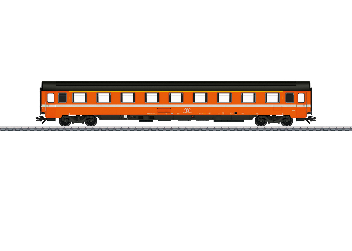 Modell: Befahrbarer Mindestradius 360 mm. Typspezifisch gestalteter Unterboden. Fiat Drehgestelle Y0270 S ohne Schlingerdämpfer und ohne Magnetschienenbremse. Vorbereitet für Strom führende Kupplung 7319 oder Strom führende Kurzkupplung 72021, Innenbeleuchtung E73400/73401, Schleifer 73406 und Zugschlussbeleuchtung 73407. Schiebebildsatz mit Wagenlaufschildern liegt bei. Länge über Puffer ca. 28,2 cm. Gleichstromradsatz E700580.