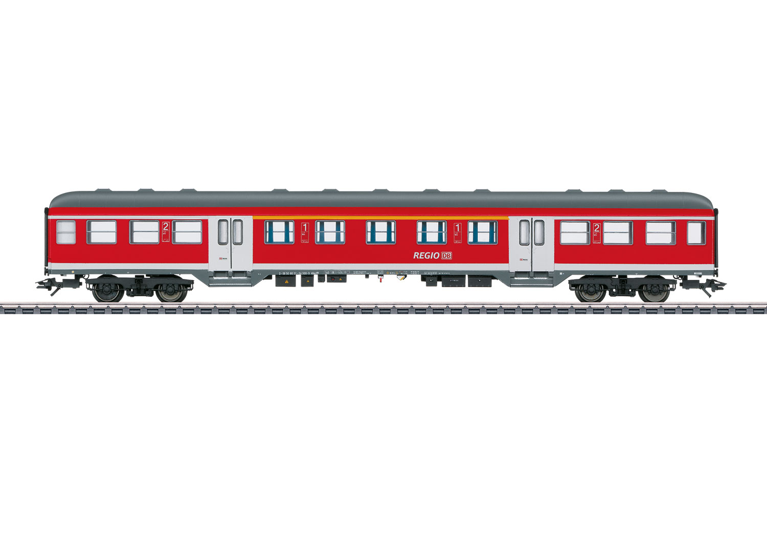 Vorbild: Nahverkehrswagen 1./2. Klasse (ABnrz 418) der Deutschen Bahn AG. Bauart Silberling in verkehrsroter Nahverkehrslackierung mit Runddach. Betriebsnummer 50 80 31-34 300-9.