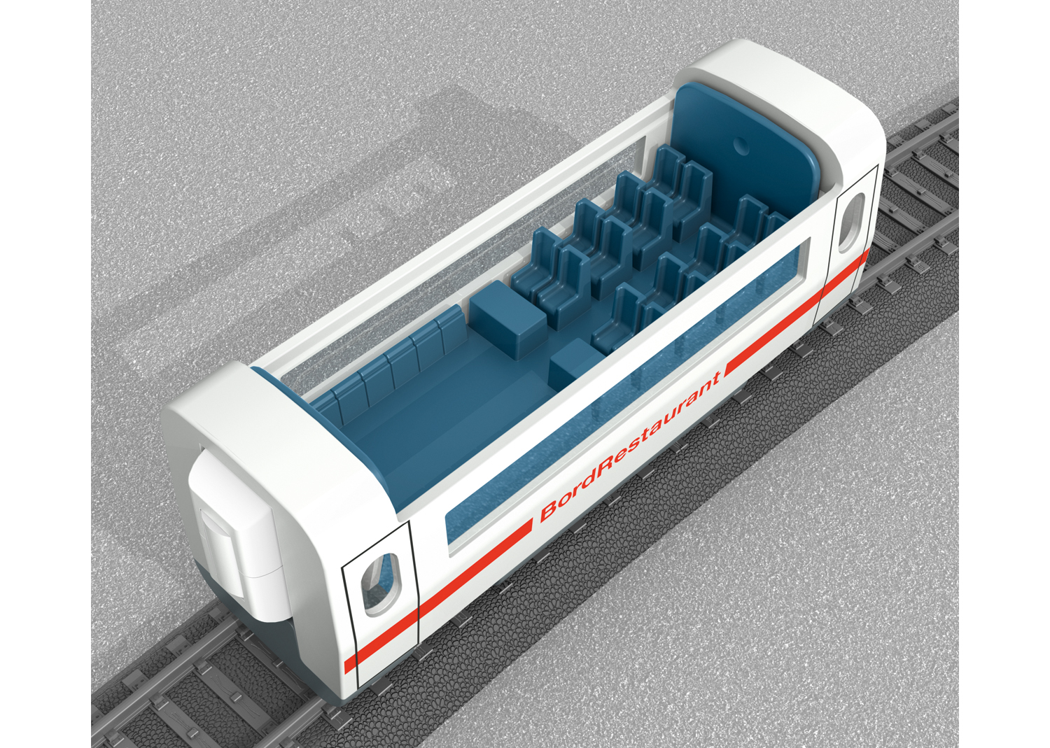 Märklin my world - Personenwagen Bord Restaurant - Vorbild: Speisewagen Bord Restaurant mit abnehmbarem, transparenten Dach.Modell: Wagen mit Inneneinrichtung und Raum zum Beladen. Transparentes Dach abnehmbar. Wagen mit Magnetkupplungen.Länge des Wagens 11,2 cmDas Bord-Restaurant ist die ideale Ergänzung zur Startpackung ICE 3 29430. Weitere Wagen sind unter den Artikelnummern 44123 und 44115 erhältlich.