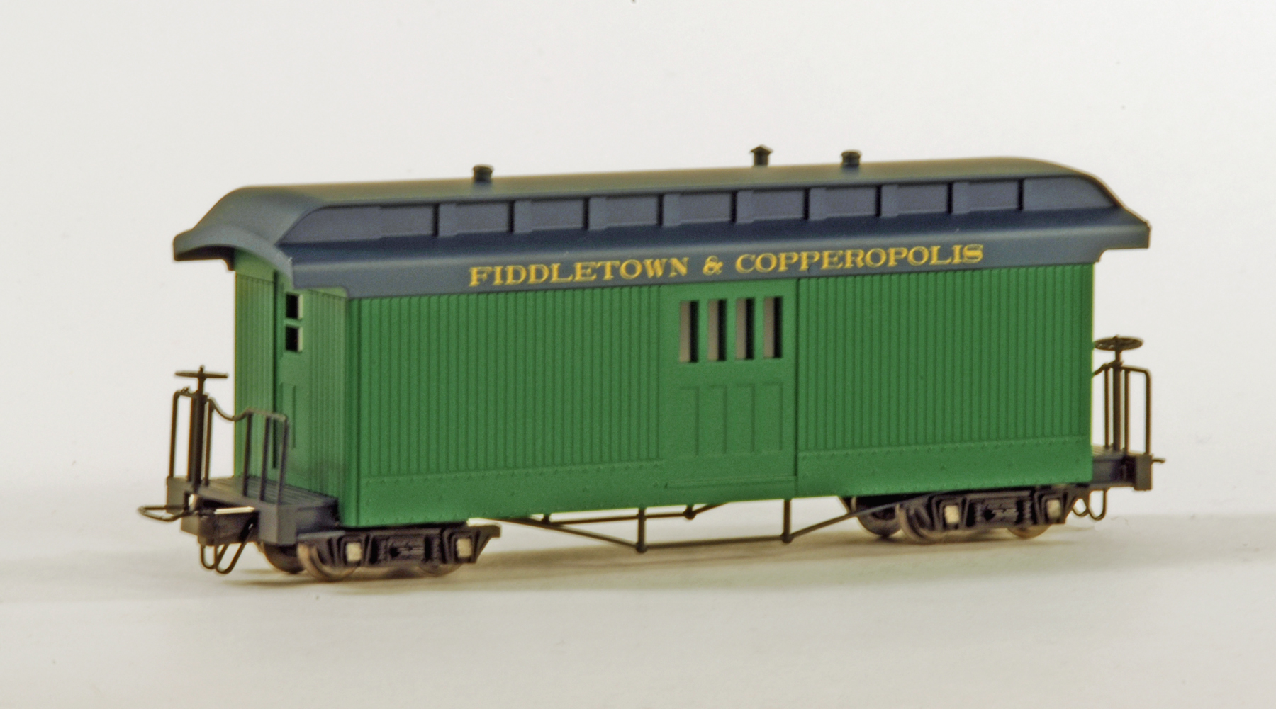 Fiddletown & Copperopolis Postwagen in grün, beschriftet.