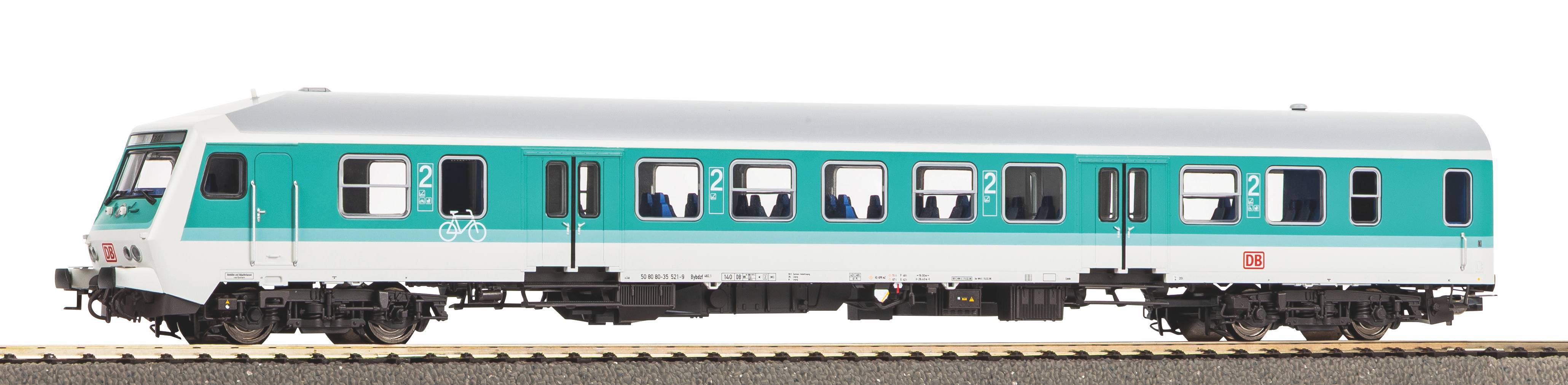Neuheit 2025: Mit der Neukonstruktion des Halberstädter Mitteleinstiegssteuerwagens und den passenden Personenwagen in mintgrüner Farbgebung der DB AG in Epoche V präsentiert PIKO weitere Klassiker im Expert Personenwagensortiment. Die markante Kopfform des Steuerwagens wurde präzise ins Modell übertragen. Durch die glasklaren, bündig eingesetzten Fenster fällt der Blick auf die detailliert ausgeführte Einrichtung im Führerstand und Fahrgastraum. Feine Türennachbildungen, kleinteilig ausgeführte Drehgestelle und zahlreiche freistehend montierte Teile, wie Trittstufen, Scheibenwischer und Griffstangen, runden den Gesamteindruck ideal ab. Das Modell ist für die Nachrüstung einer Innenbeleuchtung vorbereitet. Zudem verfügt der Steuerwagen über eine beleuchtete Zugzielanzeige sowie eine digital schaltbare Beleuchtung im Führerstand.