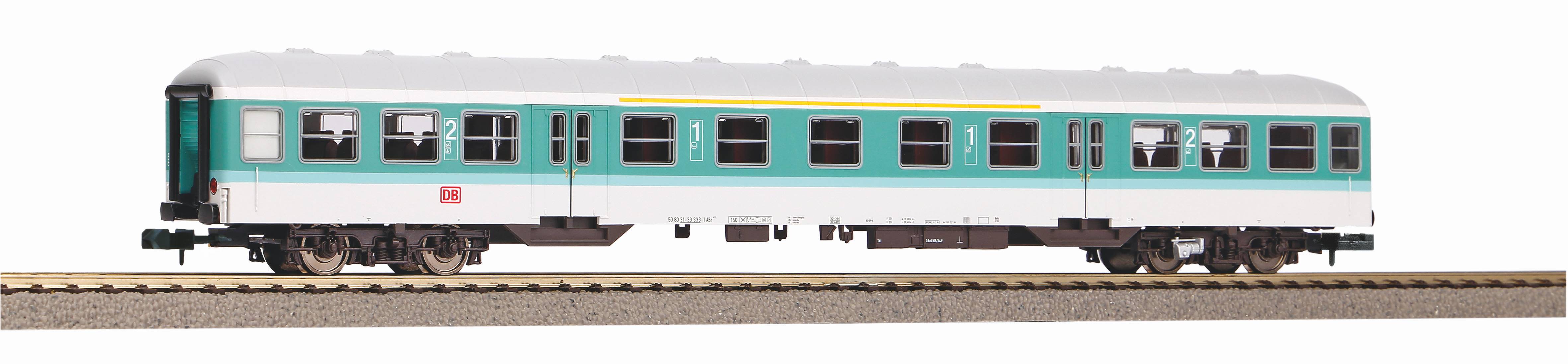 Mit den n-Wagen hat PIKO einen Fahrzeugtyp ins Sortiment aufgenommen, der praktisch auf keiner Modellbahn fehlen darf, deren Thema bei der Bundesbahn oder der DB AG angesiedelt ist. Wie beim Vorbild unterscheiden sich auch die Modelle abhängig von der Wagenklasse in Fensteraufteilung und Inneneinrichtung, die Stichmaße wurden vorbildgerecht in die Baugröße N umgesetzt. Formenbau auf höchstem Niveau sorgt für äußerst plastisch wirkende Drehgestelle und die von PIKO gewohnte hochwertige Lackierung und Bedruckung verleiht den Fahrzeugen ein hervorragendes Finish. Die Fahrzeuge sind für das unkomplizierte Nachrüsten einer Innenbeleuchtung vorbereitet.