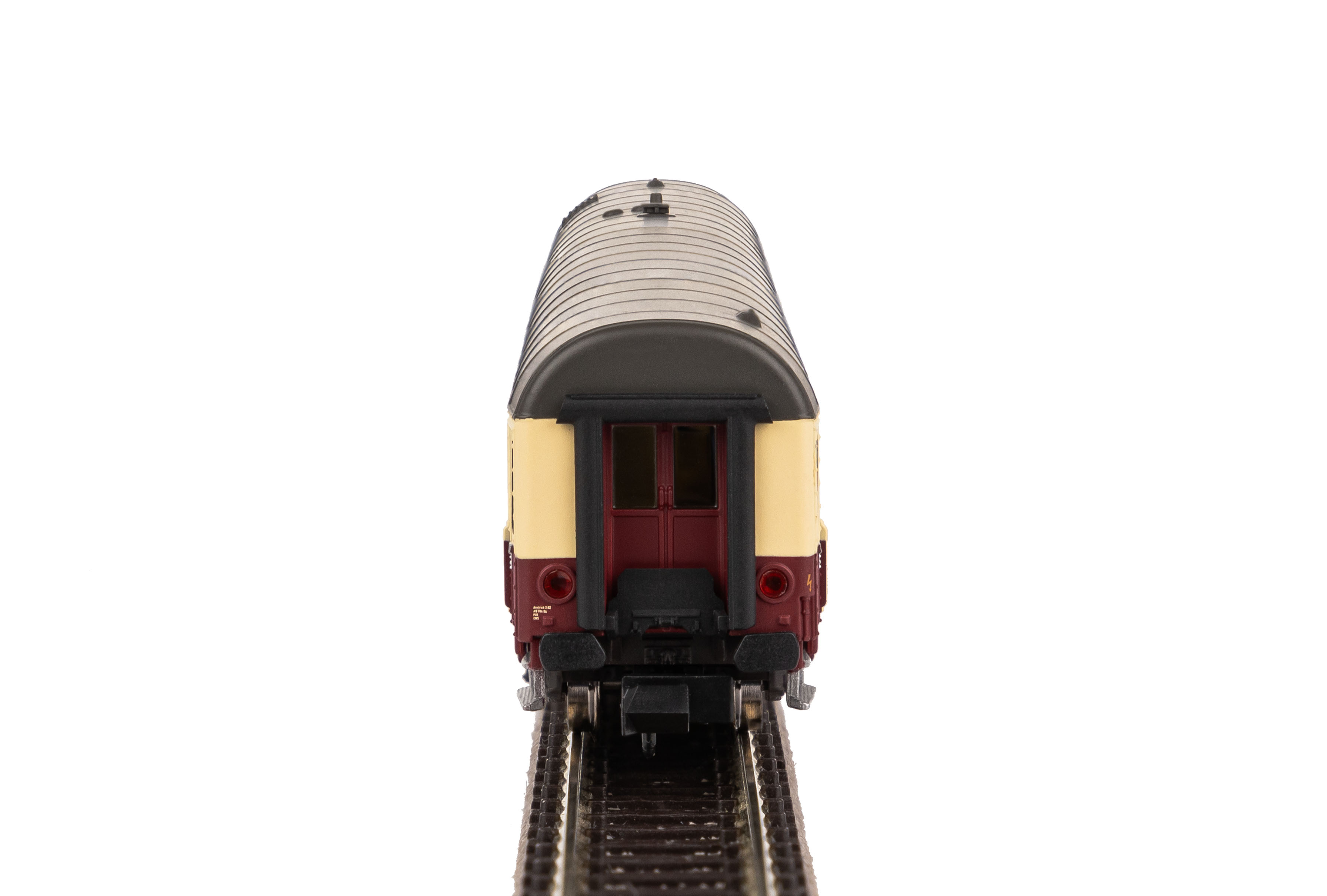 Neuheit 2023: Die IC Wagen der DB als komplette Neukonstruktion von PIKO im Maßstab 1:160. Das wegweisende Konzept des IC `79 wurde zu Beginn des Sommerfahrplans 1979 von der Bundesbahn mit dem bekannten Slogan "Jede Stunde, jede Klasse" eingeführt. Dieser neue Weg wurde erforderlich, da die rein erstklassigen Intercitys zu diesem Zeitpunkt durch den anhaltenden Fahrgastschwund kaum noch wirtschaftlich zu betreiben waren. Mit der Einführung der zweiten Wagenklasse wurde gleichzeitig der Takt auf einen Stundenrhythmus angehoben. Angestrebte Verkürzungen der Reisezeiten erfolgten durch den Ausbau vieler Strecken und die Anhebung der Höchstgeschwindigkeiten. Diese beschleunigten Züge führten zur weiteren Zeitersparnis keine Gepäck- und Postwagen mehr und waren für ein schnelles Umsteigen in den Knotenbahnhöfen in die Blöcke 1. Klasse, Speisewagen und 2. Klasse unterteilt. Nach dem Erfolg des Konzeptes wurde 1985 das IC-Netz von vier auf fünf Linien erweitert. Bis heute stellt der IC ein wichtiges Rückgrat im Fernverkehr der Bahn dar.