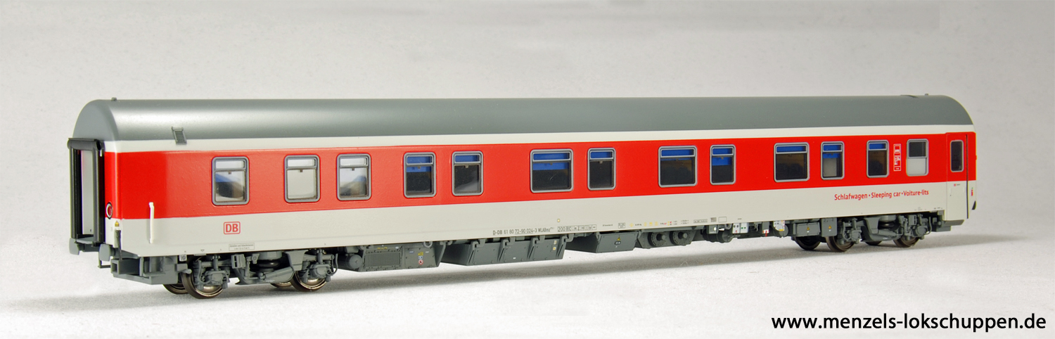 Sonderauflage von L.S.Models für Pirata Models. Schlafwagen der Bauart WLABmz 173.1 der Deutschen Bahn AG für die Epoche 5. Farbgebung rot/weiß mit DB AG Logo.
