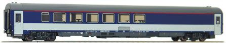Speisewagen der Bauart WRkmz 858.1 der PKP in der Farbgebung "Jan Kiepura" blau/weiß, für die Epoche 5.