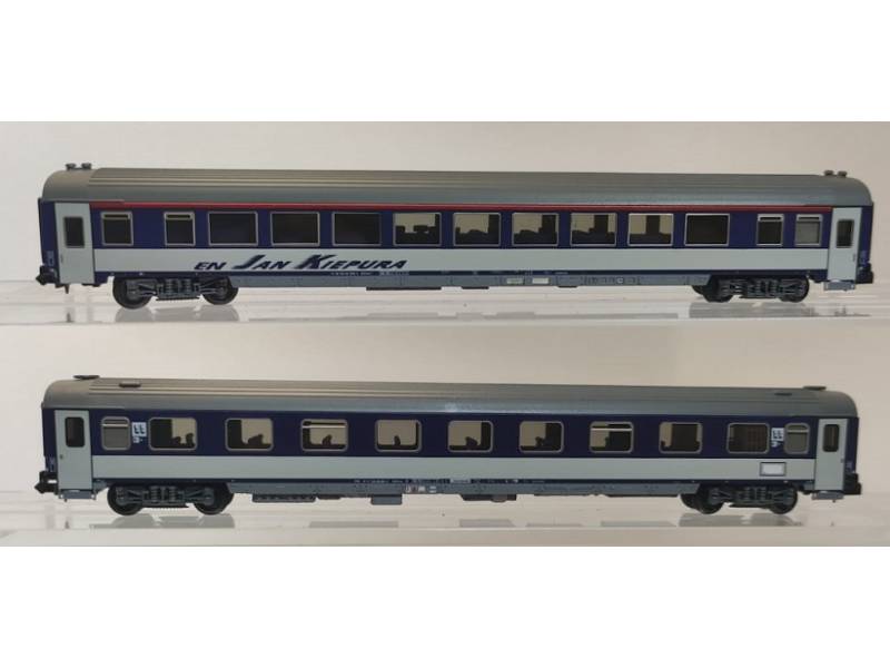 Nachtzugwagen-Set bestehend aus einem Speisewagen der Bauart WRkmz 858.0 der DB und einem Liegewagen Bdhmnu 152 der PKP im EN Jan Kiepura-Design für die Epoche 5/6.