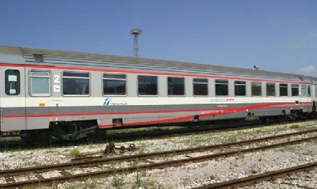 2-teiliges Reisezugwagen-Set EuroStarCity der FS in ESCI Lackierung, günes XMPR FS Logo, für die Epoche 4.
