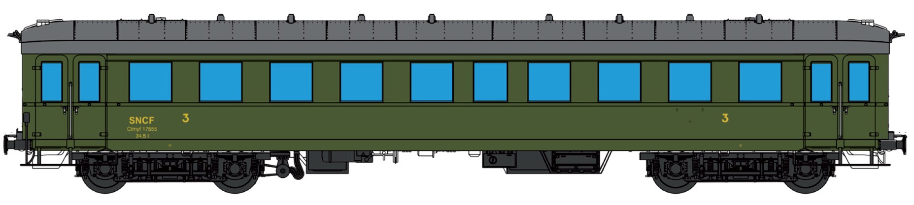 Eilzugwagen der Bauart BC der SNCF für die Epoche 3a. Farbgebung: Grün.
