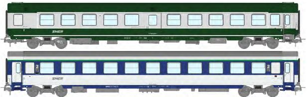 Set of 2 passenger cars: 1 AMBULANCE SO and 1 CORAIL VU COUCHETTES B10c10x, Noodle logo, SNCF Ep.IV-V