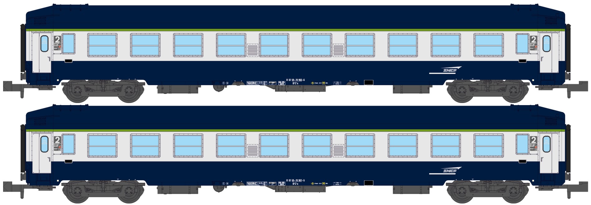 SET of 2 UIC SLEEPING CAR, High roof, arrow logo, Blue TEN color Era V