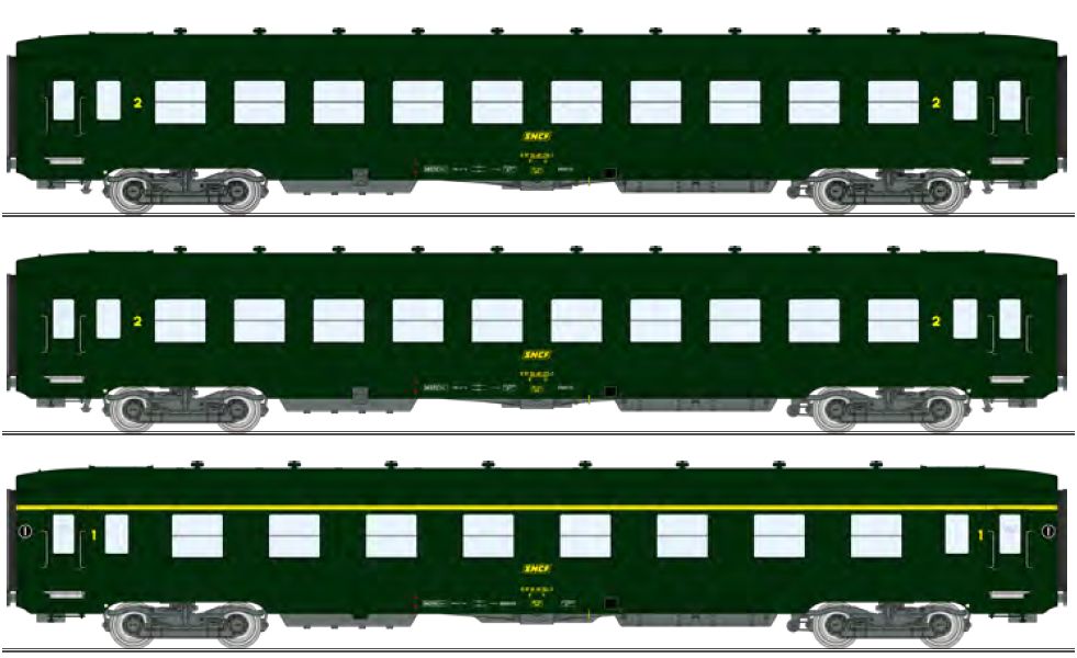 REE Modeles VB-392 SNCF Reisezugwg.-Set DEV AO 3-tlg Ep.4