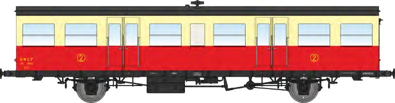 Sud-Ouest - 15m 2nd class railcar XR trailer, red/cream with stove, period IIIb