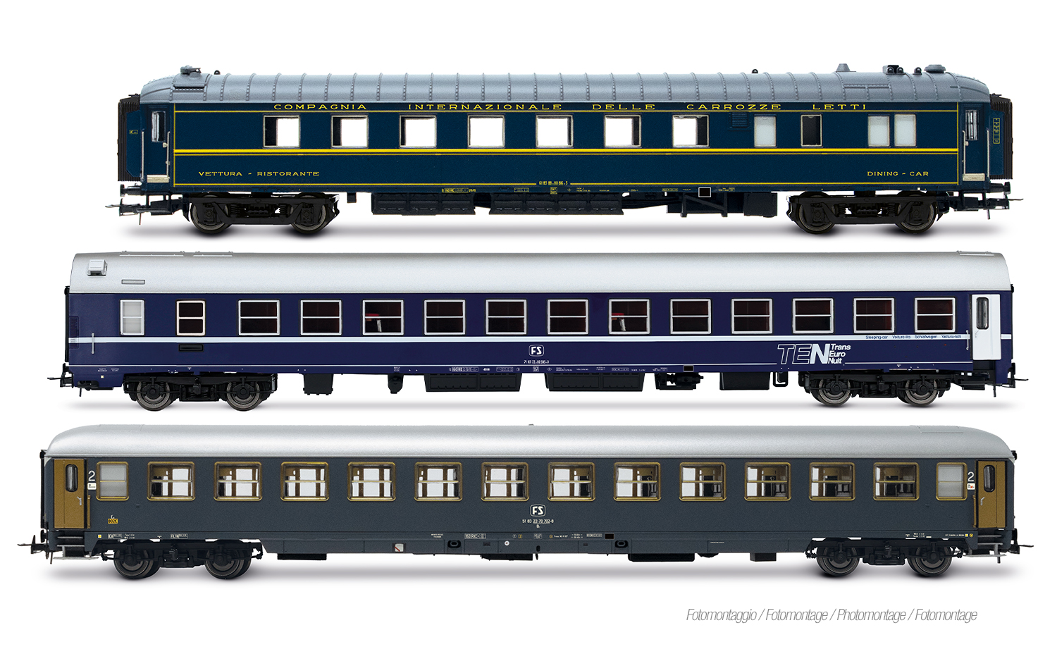 FS, 3-tlg. Set Exp 234/235 "Remus"“ Roma -– Wien, WR "Pistoiesi" ex CIWL, WLABm MU '68 TEN + UIC-X '75 2. Klasse, grau -