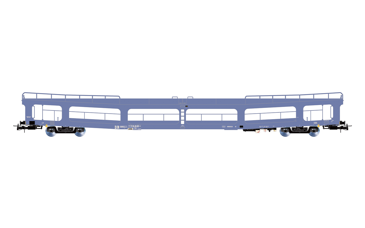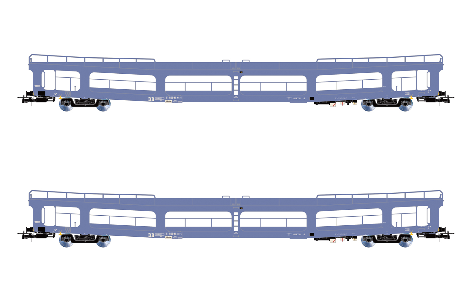 DR, 2-tlg. Set Autotransportwagen DDm916 , in blauer Farbgebung, Ep. IV