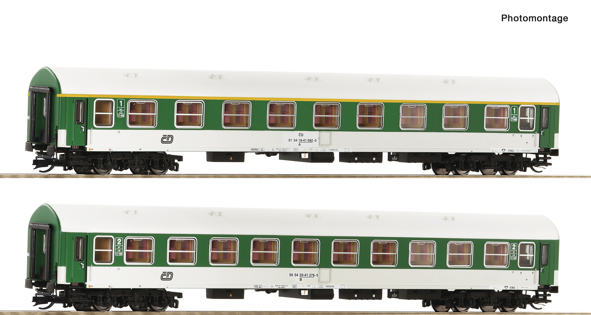 Wagenset 1 mit zwei Reisezugwagen Bauart Y/B 70 der Tschechischen Staatsbahnen.