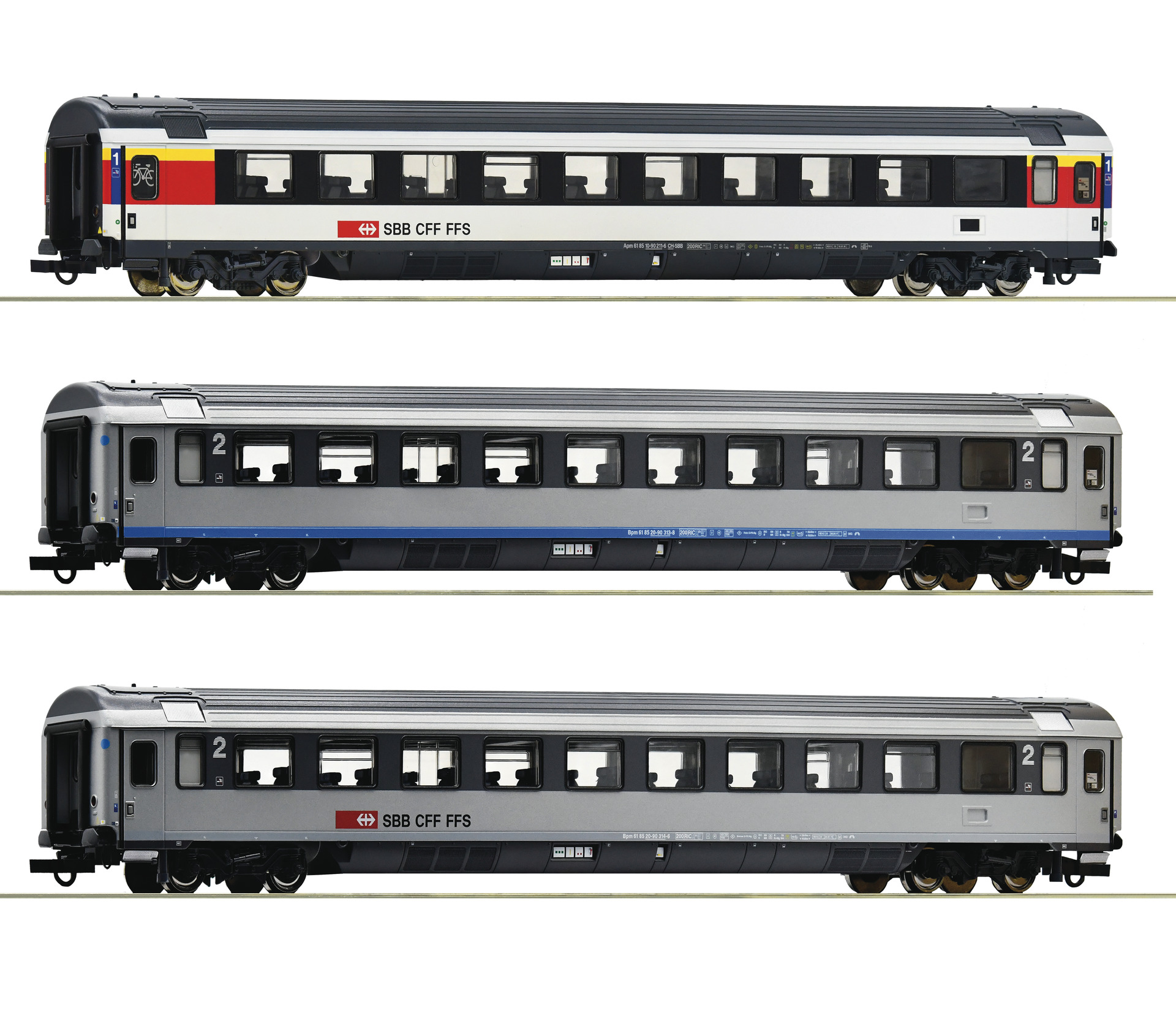 Wagenset 2 mit drei Schnellzugwagen für den EuroCity 7 der Schweizerischen Bundesbahnen.
