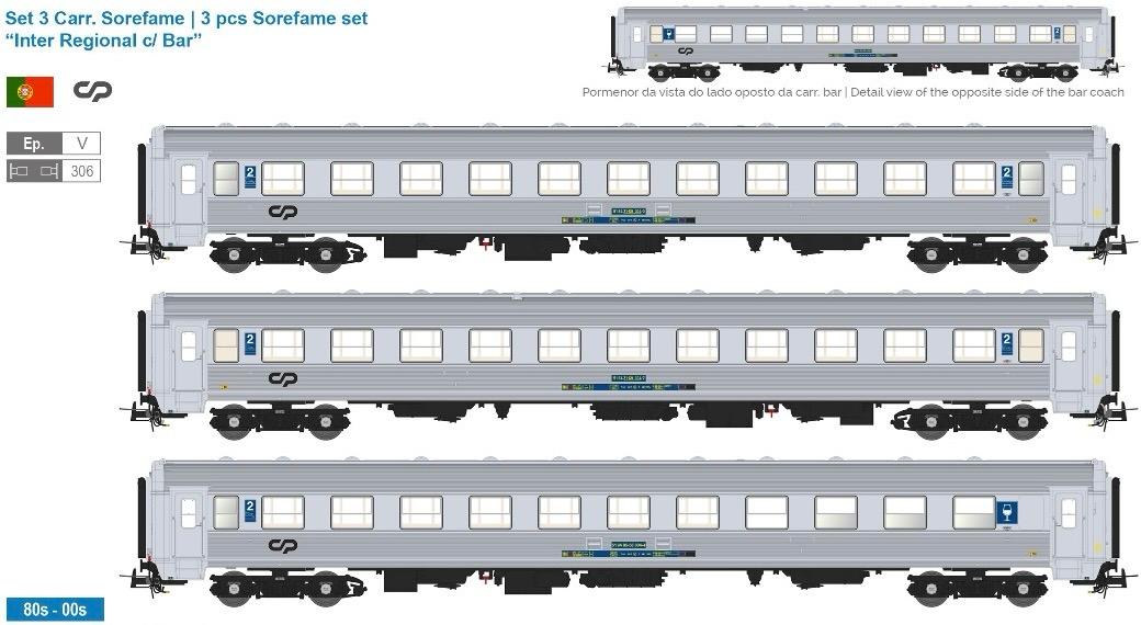 - Conjunto composto pelas seguintes 3 carr. Sorefame | Set consisting of the following 3 Sorefame coaches: