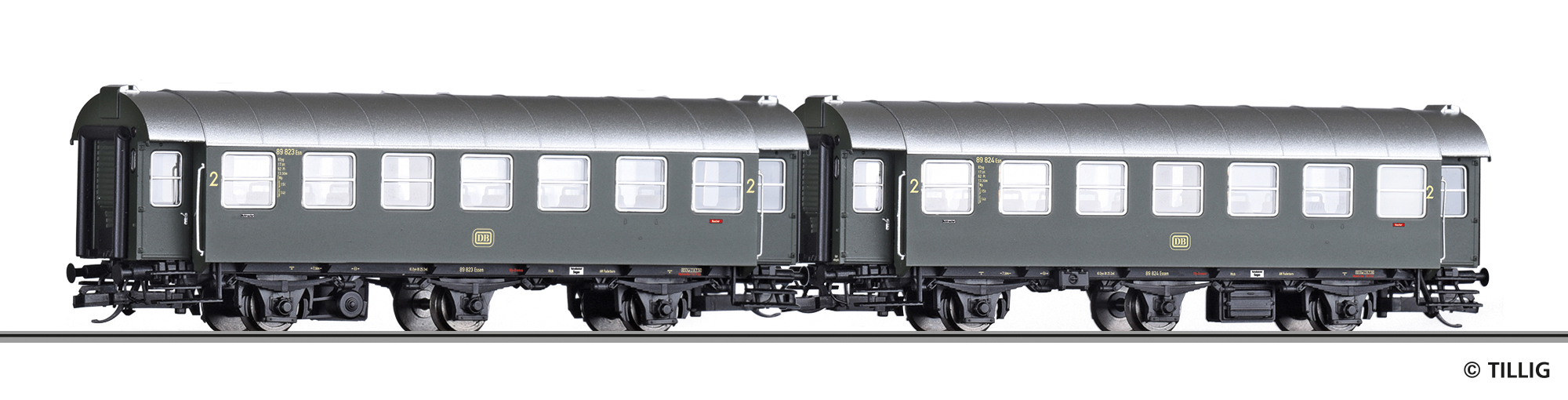 bestehend aus zwei dreiachsigen 2. Klasse Reisezugwagen