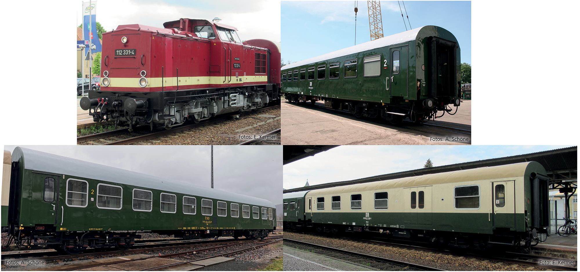Einmalauflage 2026 - Reisezugwagenset Museumszug der OSEF e.V.“, bestehend aus einer Diesellokomotive BR 112, einem Reisezugwagen 2. Klasse Bghw und einem Reisezugwagen 2. Klasse mit Gepäckabteil BDwsb und ein Reisezugwagen 2. Klasse Typ Y/B 70, Ep. VI