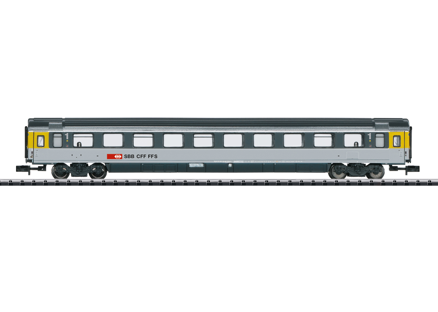 Vorbild: Großraumwagen 1. Klasse Apm der Schweizerischen Bundesbahn (SBB), ex Cisalpino.