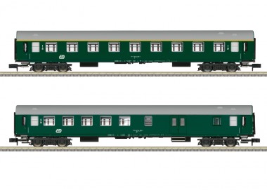 Schnellzugwagen-Set Bauart Y/B - Vorbild: 1 Schnellzugwagen 2. Klasse mit Gepäckabteil Bauart Y-B/70 und 1 Schnellzugwagen 1. Klasse der Tschechischen Eisenbahn (#eské drahy #D) in moosgrüner Farbgebung. Baujahr ab 1968.Modell: Mit Kinematik für Kurzkupplung. Vorbereitet für den nachträglichen Einbau einer Innenbeleuchtung.Gesamtlänge über Puffer 306 mm.Die dazu passende Innenbeleuchtung:66616 LED-Innenbeleuchtung.