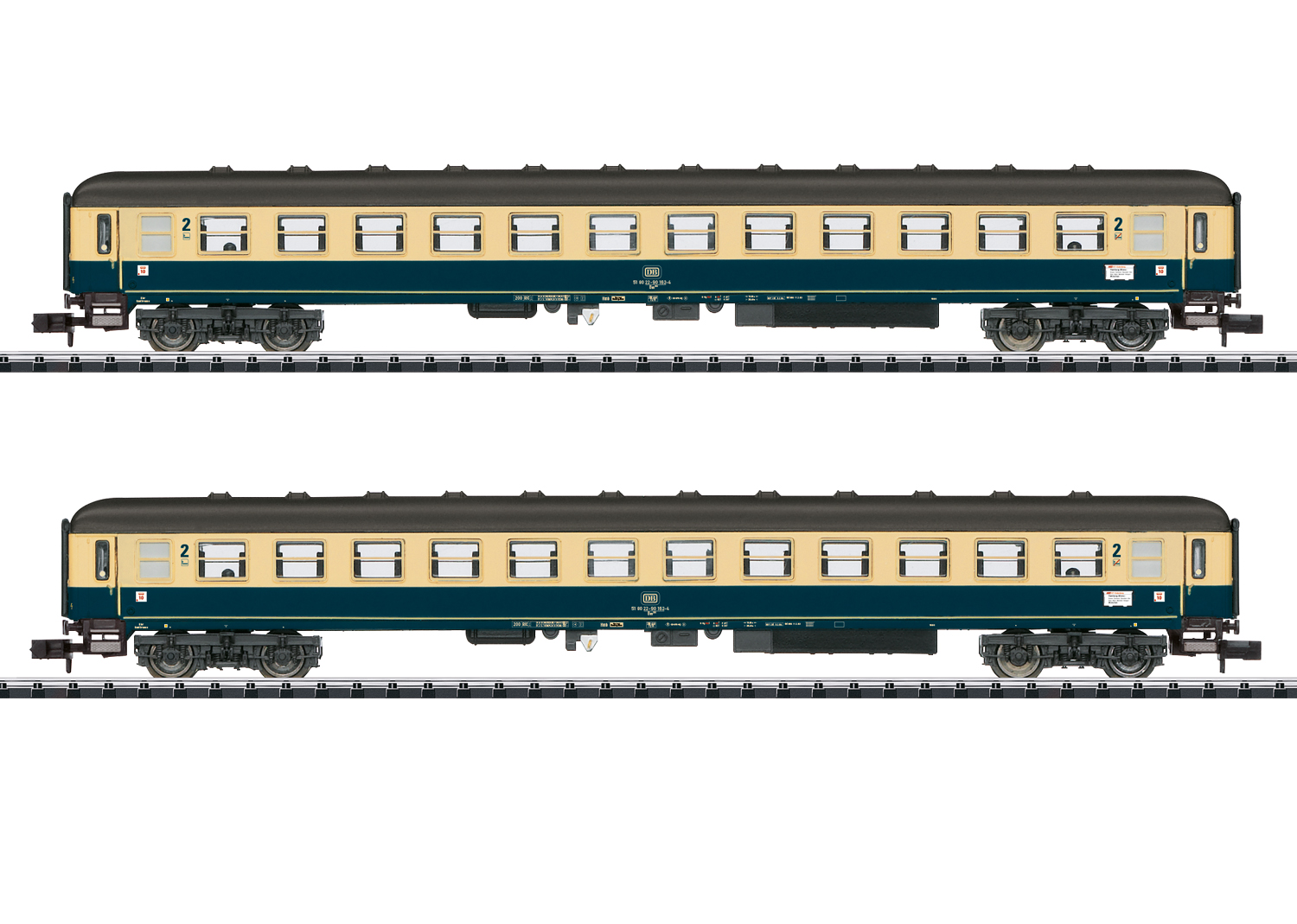 Modell: Alle Wagen mit Kinematik für Kurzkupplung. Vorbereitet für den nachträglichen Einbau einer Innenbeleuchtung.Gesamtlänge über Puffer 330 mm. Vorbild: 2 Schnellzugwagen Bauart Bm 234, in der Ausführung der Deutschen Bundesbahn (DB), für den Fernschnellzug FD 1922 Berchtesgadener Land von Freilassing über München, Ingolstadt, Würzburg, Köln nach Dortmund. Betriebszustand im Jahr 1989. Die dazu passende Innenbeleuchtung: 66616 LED-Innenbeleuchtung. Einen vorbildgerechten Zug erhalten Sie mit der Lokomotive der Baureihe 110 Artikelnummer 16109 und mit den Schnellzugwagensets 18274 und 18275. 100 Jahre Fernschnellzug
