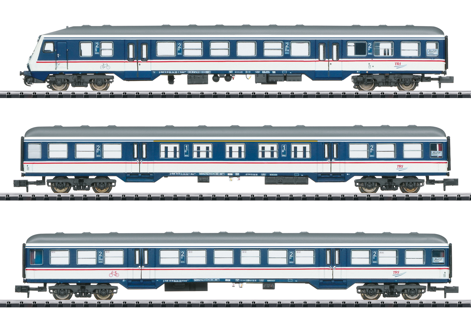 Vorbild: Nahverkehrswagen 1./2. Klasse ABnrz, Nahverkehrswagen Bnrdz 451.9 und Nahverkehrssteuerwagen Bauart Bnrbdzf 480.1 (Betriebsnummer: 50 80 80-34 129-2) der Train Rental GmbH (TRI).Betriebszustand um 2021. Einen kompletten Zug erhalten Sie mit dem Wagen der 2. Klasse Artikelnummer 18489 und der Elektrolokomotive Baureihe 182 Artikelnummer 16959.