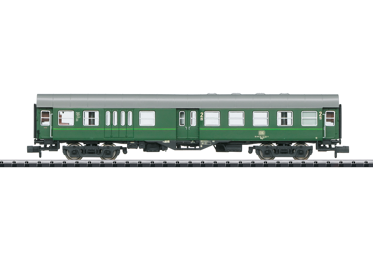 Personenwagen BDyg 532 - Vorbild: vierachsiger Umbauwagen 2. Klasse mit Gepäckraum BDyg 532 der Deutschen Bundesbahn (DB). Ausführung um 1984 in chromoxidgrüner Farbgebung für den Einsatz auf der Allgäu-Zollern-Bahn.Modell: Wagen mit Kinematik für Kurzkupplung und mit Drehgestellen der Bauart Minden-Deutz-Leicht. Vorbereitet für den nachträglichen Einbau einer Innenbeleuchtung. Länge über Puffer 122 mm.Die dazu passende Innenbeleuchtung: 66638 LED-Innenbeleuchtung.Einen vorbildgerechten Zug erhalten Sie mit der Lokomotive der Baureihe 215 Artikelnummer 16254 und den Nahverkehrswagen 18453 sowie 18454.