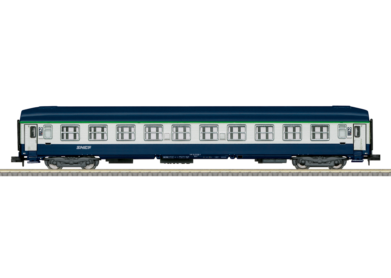 Schnellzugwagen Bauart B9c9x - Vorbild: Schnellzug-Liegewagen 2. Klasse (B9c9x) der Französischen Staatseisenbahn (Société nationale des chemins de fer français / SNCF). Im Zustand um 1994.Modell: Mit Kinematik für Kurzkupplung. Vorbereitet für den nachträglichen Einbau einer Innenbeleuchtung.Länge über Puffer 153 mm.Die dazu passende Innenbeleuchtung:66616 LED-Innenbeleuchtung.
