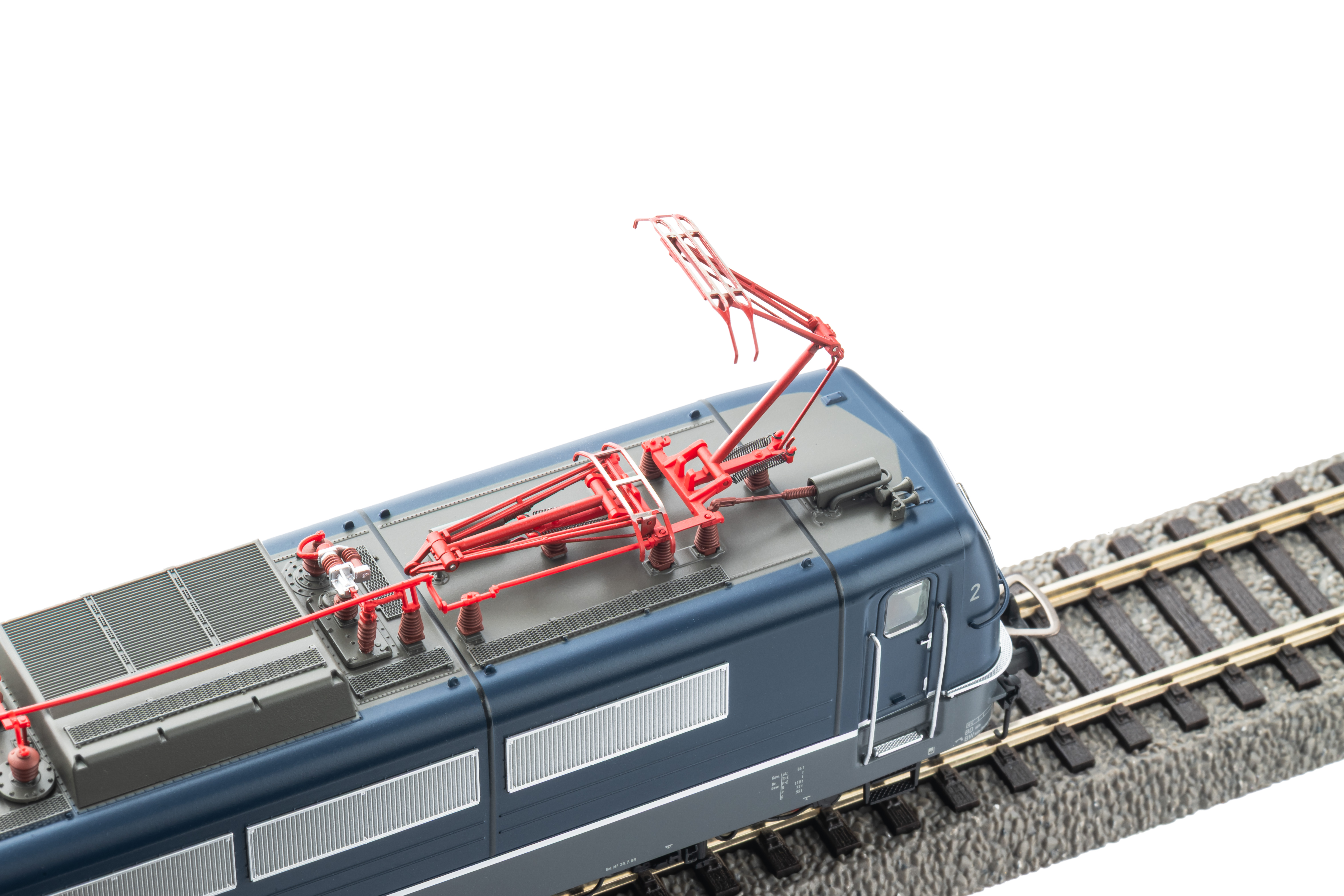 Ausgestattet für verschiedene Stromsysteme in Deutschland, Frankreich, Belgien und Luxemburg erleichterten die Maschinen den grenzüberschreitenden Verkehr merklich. Die PIKO Konstruktion setzt der Lokomotive ein würdiges Denkmal. Beim Blick auf den detaillierten Dachgarten fallen direkt die feingliedrigen Stromabnehmer aus Metall ins Auge, welche ohne sichtbare Verschraubungen auf dem Lokdach montiert wurden. Die Seitenflächen werden durch feine Gitter und Gravuren geprägt. Durch die Tür im Führerstand fällt der Blick in den detailliert nachgebildeten Maschinenraum, welcher durch eine stimmige Beleuchtung ideal in Szene gesetzt wird. Auch die Führerstandbeleuchtung ist digital schaltbar. Beim Blick unter den Lokkasten präsentieren sich die Drehgestelle mit zahlreichen, separat angesetzten Bauteilen. Abgerundet wird der Gesamteindruck durch die saubere Lackierung und die konturenscharfe Bedruckung.Das PIKO Expert-Modell verfügt über eine PluX22 Schnittstelle zum unkomplizierten Nachrüsten eines Decoders.